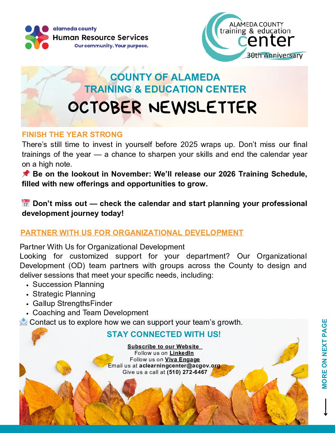 October – Training & Education Center Newsletter Tamara Mabry October 1, 2025County Programs, Events, facility, News October 2025 TEC NEWSLETTER
